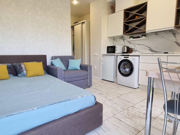 Продается квартира в Сочи, Сириус. Общая площадь - 22м2 с балконом. Дизайнерский ремонт. Квартира продается с мебелью и техникой.
