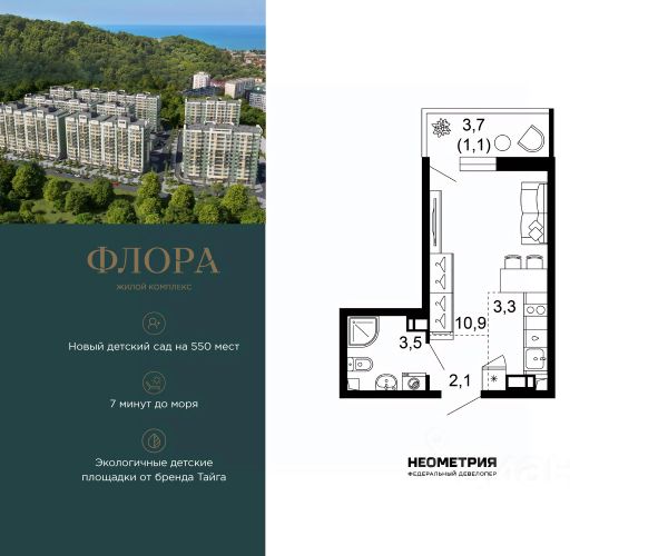 Проект включает в себя 7 жилых корпусов высотой 12 этажей. В подъездах выполнена дизайнерская отделка в светлой цветовой гамме с яркими акцентами, для удобства жителей в местах общего пользования предусмотрена навигация. В каждой секции предусмотрены помещения для хранения велосипедов и колясок с обустроенным местом для мойки колес и лап домашних животных. Покупателям в ЖК предложено множество планировочных решений: в наличии квартиры, как классического типа, так и европланировки. Из окон открываются виды на реку и горы. Квартиры сдаются без отделки. В состав комплекса входит школа на 2 000 мест, детский сад на 550 мест и фитнес-центр. На первых этажах расположены коммерческие помещения. Во дворах установлены детские площадки, спортивные комплексы и деревянные беседки для отдыха. По периметру ЖК ведется видеонаблюдение, к которому можно подключится online при помощи специального приложения для мобильных устройств. Рядом с комплексом располагается благоустроенная набережная реки Кудепста. Комплекс расположен в микрорайоне Кудепста города Сочи. В окрестностях района находится большая плантация пробкового дуба. В пешей доступности есть школы, детские сады, магазины, медучреждения, салоны красоты и места для отдыха. Комплекс расположен в 1,9 км от моря, и 7 км до Сочи.