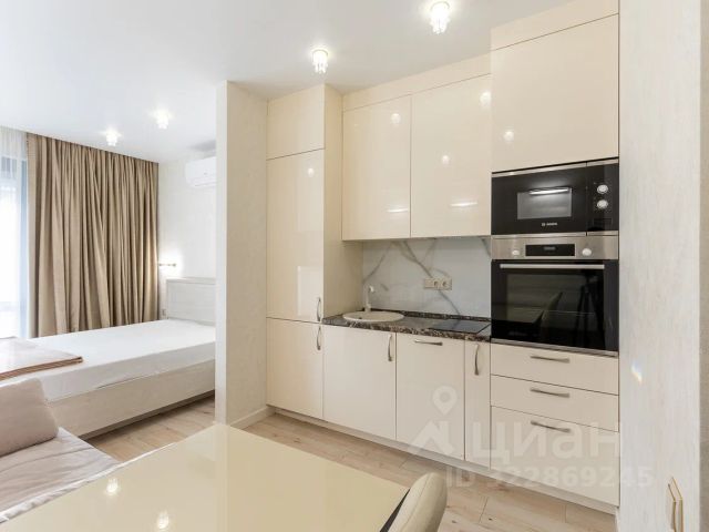 К продаже представлена современная студия, входящая в состав комплекса бизнес-класса в центре Сочи. Предложение идеально подходит для отдыха или для выгодного инвестирования в городскую недвижимость. Достоинств у предложения на самом деле много. Самое правильное решение посетить объект вместе с экспертами нашей компании и лично во всем убедиться! Общая площадь квартиры 28 м2. Здесь стоит первоочередно отметить факт грамотного зонирования пространства, благодаря которому в квартире удалось выделить полноценную кухню с обеденной зоной, а также зону для отдыха. Обособлено выделена гардеробная это большой плюс. В ней можно хранить все личные вещи и хозяйственный инвентарь, лишая при этом интерьер ненужного визуального шума. Кстати, квартира полностью готова для жизни и отдыха. Интерьер отличается не только визуальной эстетикой, но и очень высоким качеством. Возможность отметить новоселье сразу после покупки это очень большой плюс. Отдельного внимания заслуживает и сам жилой комплекс. Его территория закрыта для посторонних лиц и охраняется в круглосуточном режиме. Выполнен ландшафтный дизайн, есть зона для отдыха с фонтаном, игровые и спортивные площадки. Большое внимание уделено вопросу внутреннего сервиса и приватности проживания. В паре минут ходьбы от дома находятся различные магазины, салоны красоты, аптечные пункты. За 10 минут можно дойти до Морского порта и центральной набережной. Также рядом с домом находятся самые популярные достопримечательности пешеходная улица Навагинская, парк Ривьера, Платановая аллея и другие.