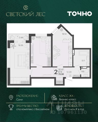 Эта квартира станет отличным выбором для тех, кто ценит комфорт, удобство расположения и качество жизни или же может стать прекрасной инвестицией для сдачи квартиры в аренду в одном из лучших курортных городов России.