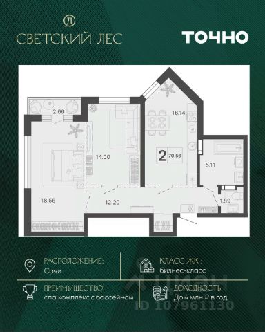 Эта квартира станет отличным выбором для тех, кто ценит комфорт, удобство расположения и качество жизни или же может стать прекрасной инвестицией для сдачи квартиры в аренду в одном из лучших курортных городов России.