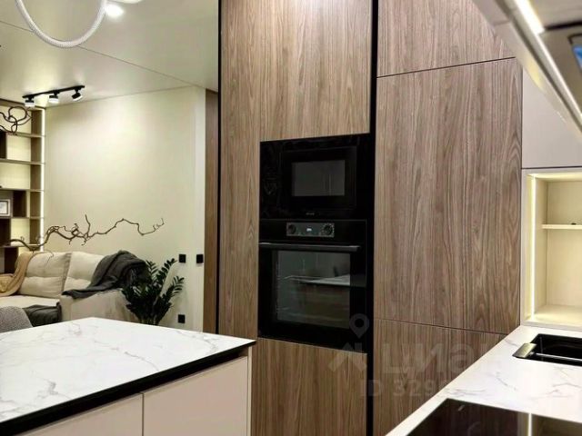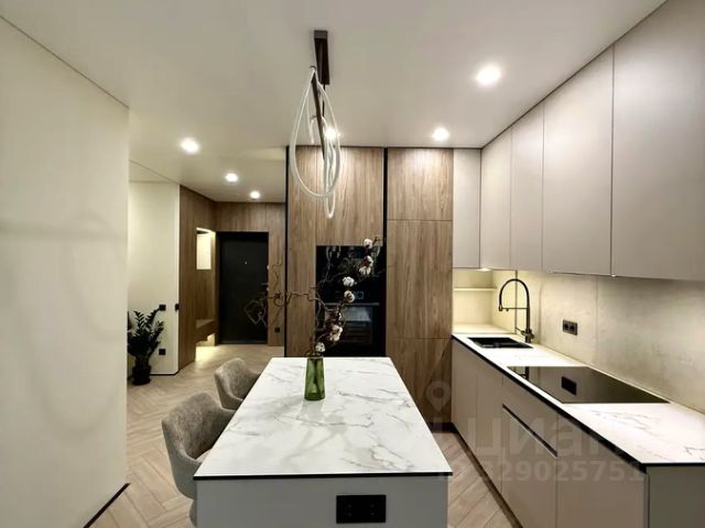 Интерьер выполнен в современном стиле с продуманной планировкой и грамотным зонированием пространства. В квартире приятно находиться за счёт большого количества света и правильного освещения. По всей площади установлен тёплый пол, что создаёт дополнительный комфорт в любое время года, также предусмотрены радиаторы отопления. Квартира полностью укомплектована. Новому владельцу остаётся всё: кухонный гарнитур со встроенной техникой (холодильник, варочная панель, духовой шкаф, посудомоечная машина), стиральная машина, кондиционеры, вся мебель, спальные зоны, системы хранения, текстиль и элементы декора.