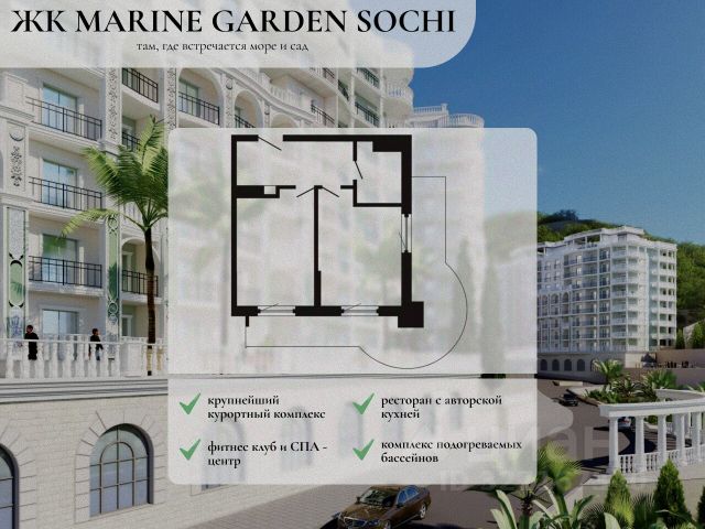 Добро пожаловать в высочайший класс роскошной жизни с потрясающей архитектурой и очарованием прекрасной эпохи "Belle Epoque". Гостиничный комплекс "Marine Garden Sochi" Hotels & Resort - место, которое станет частью вашей истории. "Marine Garden Sochi" Hotels & Resort - крупнейший курортный комплекс, расположенный между живописным зеленым массивом и панорамным морским простором района Хоста города Сочи в уединённой парковой зоне площадью 8 га с собственной культурной и развлекательной инфраструктурой. Рестораны с авторской кухней, бары, комплекс подогреваемых бассейнов и высококлассный СПА, центр красоты и здоровья, фитнес-клуб, спортивные площадки и теннисные корты, пространства для торжеств и мероприятий любого масштаба, бизнес-центр и конференц-залы с современным оборудованием, тематический экопарк, детский центр и развлекательные площадки, шикарные номера в европейском стиле с классическим декором, отделкой из благородных материалов и современной элегантной мебелью. Здесь все продумано так, чтобы круглогодично создавать незабываемые впечатления и атмосферу настоящего волшебства