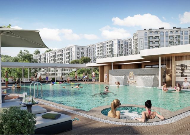 Продается квартира в жилом комплексе бизнес-класса "Лестория". В составе ЖК предусмотрена собственная аквазона площадью 473 квадратных метра с двумя подогреваемыми бассейнами, что соответствуют стандартам бизнес-класса.