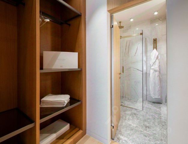 Резиденция с балконом, а также одним санузлом. Из окон открывается вид во внутренний двор, на бассейны и парки. Высота потолков составляет 3,1 метра. Отделка под ключ