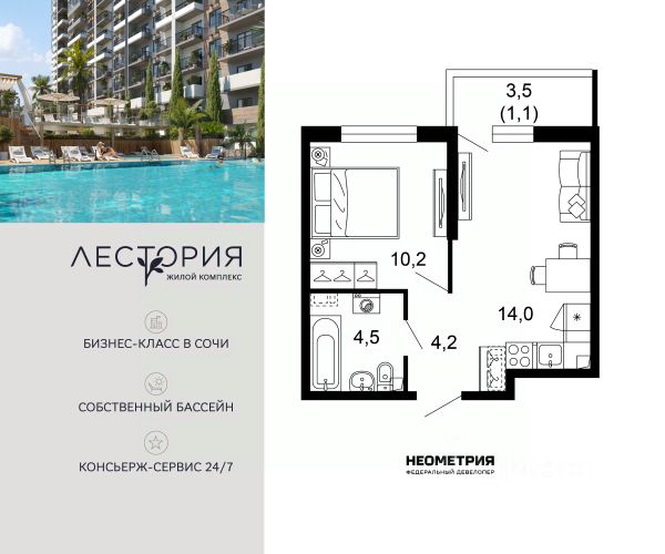 Проект включает в себя 7 жилых корпусов высотой 12 этажей. В подъездах выполнена дизайнерская отделка в светлой цветовой гамме с яркими акцентами, для удобства жителей в местах общего пользования предусмотрена навигация. В каждой секции предусмотрены помещения для хранения велосипедов и колясок с обустроенным местом для мойки колес и лап домашних животных. Покупателям в ЖК предложено множество планировочных решений: в наличии квартиры, как классического типа, так и европланировки. Из окон открываются виды на реку и горы. Квартиры сдаются без отделки. В состав комплекса входит школа на 2 000 мест, детский сад на 550 мест и фитнес-центр. На первых этажах расположены коммерческие помещения. Во дворах установлены детские площадки, спортивные комплексы и деревянные беседки для отдыха. По периметру ЖК ведется видеонаблюдение, к которому можно подключится online при помощи специального приложения для мобильных устройств. Рядом с комплексом располагается благоустроенная набережная реки Кудепста. Комплекс расположен в микрорайоне Кудепста города Сочи. В окрестностях района находится большая плантация пробкового дуба. В пешей доступности есть школы, детские сады, магазины, медучреждения, салоны красоты и места для отдыха. Комплекс расположен в 1,9 км от моря, и 7 км до Сочи.