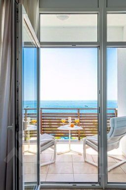 Современные апартаменты с панорамным видом на море и удобным расположением всего в 140 метрах от пляжа. Преимущества квартиры: Две изолированные спальни с большими двуспальными кроватями 180210 Мини-рабочая зона с письменным столом Большая кухня-гостиная с обеденной зоной из натурального дерева Полностью оснащенная кухня: посудомоечная машина, система осмос, эл. турка Два санузла: ванна и душевая кабина Три меблированных балкона с прямым видом на море Кондиционер в каждой комнате ЖК телевизор, два раскладных дивана-кровати Ascona 180210 Вместительные гардеробные шкафы Продуманный интерьер и свежий ремонт Инфраструктура: Поблизости магазины, аптеки и кафе Во дворе — 2 бассейна: взрослый с подогревом и детский Для гостей доступна бесплатная парковка на платной стоянке Инфраструктура Альфы Сириуса — вся в вашем распоряжении Расположение: До кромки моря — всего 100140 метров В 5 минутах пешком один из лучших пляжей района Тихий благоустроенный район, удобный для прогулок Удобная транспортная доступность Условия покупки: возможна рассрочка, ипотека под низкий процент на весь срок, наличный расчет. Звоните! Срочное предложение, есть торг.