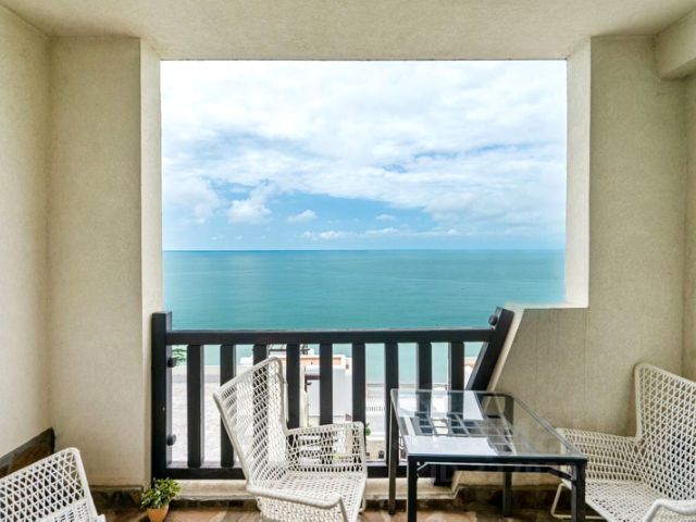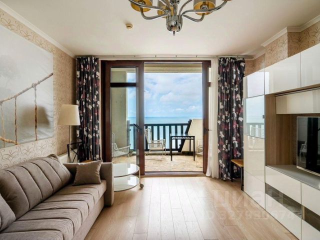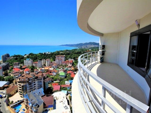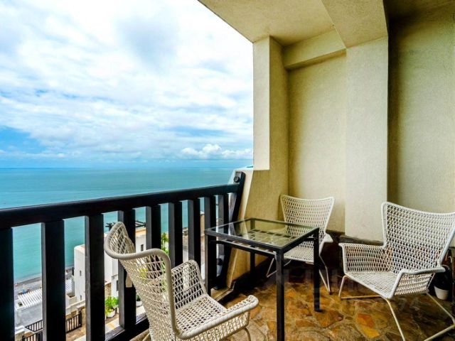 Высокий этаж,шикарный вид из окон на море ,пальмы и сосны.Отсутствие соседей над головой.