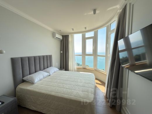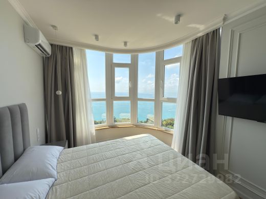 Угловая четырехкомнатная резиденциия с кухнейгостиной и балконом, а также двумя санузлами Из окон открывается панорамный вид на море. Высота потолков составляет 3,1 метра. Отделка под ключ.