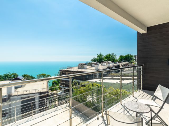 Отдельно стоит упомянуть террасу, где можно установить газовый гриль и ротанговую мебель, наслаждаясь завтраками и ужинами с видом на Черное море и тропическую зелень национального парка.