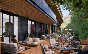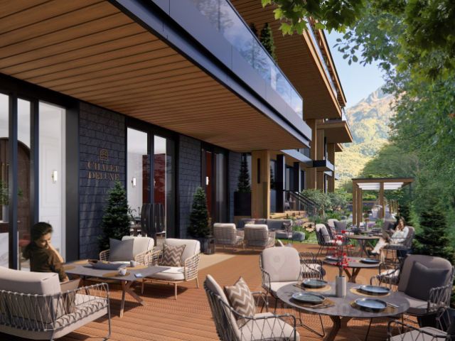 В проекте сочетаются традиционная альпийская архитектура и современные архитектурные решения, направленные на создание комфорта и уюта. Здание возведено по монолитной технологии с комбинированной отделкой. В оформлении фасадов использованы HPL-панели и натуральный камень, гармонично интегрированные в природный ландшафт. В доме предусмотрен пассажирский лифт, оборудован лобби-бар с выходом на открытую террасу. В комплексе представлены студии и однокомнатные апартаменты с панорамными окнами и высотой потолков 2,8 м. Квартиры полностью меблированы и оснащены бытовой техникой, текстилем, посудой и банными принадлежностями. Интерьер выдержан в классическом стиле с использованием спокойных натуральных оттенков и выверенных пропорций. Акцентом служит мебель дизайна 60-х годов, благодаря которой создается контраст с мягкими тонами стен. Жителям и гостям комплекса доступны разнообразные сервисы и инфраструктура уровня курортного отеля. Работает ресторан a la carte, спа-комплекс с бассейнами и сауной, предоставляются услуги массажистов и косметологов. На территории предусмотрены бионические шатры для мероприятий, медитаций и ретритов. Порядок и высокий уровень сервиса обеспечивает профессиональный отельный оператор. Проект расположен в центре поселка Красная Поляна, в окружении гор и объектов инфраструктуры ведущего зимнего курорта страны. Рядом находится Кавказский государственный биосферный заповедник. В 1020 минутах пешком доступны кафе, рестораны, фитнес-клубы и салоны красоты. До горнолыжного курорта Роза Хутор — 20 минут транспортом, до Черного моря — 50 минут, до центра Сочи — 1 час 20 минут. Ближайшая остановка общественного транспорта Ачишховская улица находится в 15 минутах пешком.