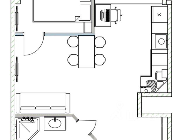 Просторная уютная студия с выделенными зонами кухни и отдыха создает комфортные условия для проживания, или для сдачи в аренду c прибыльным доходом.