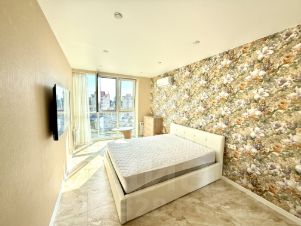 Площадь представленной квартиры 45 м2. Внутреннее пространство поделено на изолированную спальную комнату и гостиную, объединенную вместе с зоной кухни. Вопросу зонирования пространства авторы проекта уделили особо пристальное внимание, поэтому квартира действительно удобна для постоянного проживания. Из окон открывается хороший вид на городскую панораму и придомовую территорию. Важен тот факт, что квартира полностью готова для жизни и не требует дополнительных финансовых вложений. Отделка дизайнерский ремонт, который отличается не только визуальной эстетикой, но и действительно высоким качеством исполнения. Здесь обязательно стоит побывать лично, чтобы оценить все плюсы данного предложения в самом полном объеме. По своему содержанию, комплекс представляет собой полноценный микрорайон, где есть все необходимое для комфортного проживания: парковка для автомобилей, игровые и спортивные площадки, салоны красоты, частный детский сад. Также в состав комплекса входит собственный торговый центр. Вход для посетителей находится с внешней стороны, поэтому клиенты магазинов и офисов не будут мешать жильцам дома. Комплекс расположен в очень удобном месте, что позволяет жильцам легко добраться до всех необходимых объектов инфраструктуры. В шаговой доступности от комплекса находятся многочисленные магазины, супермаркеты, образовательные и медицинские учреждения, дошкольные учреждения. За 10 минут можно пешком дойти до Центрального рынка, Торгового центра Сан-Сити или железнодорожного вокзала. До ТРЦ Море Молл можно добраться за 15-20 минут пешком.