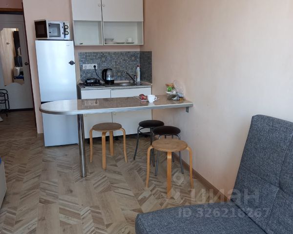Кухня-гостиная 15 кв.м. с двумя большими окнами на юго-восток, откуда потрясающий вид на море и горы.