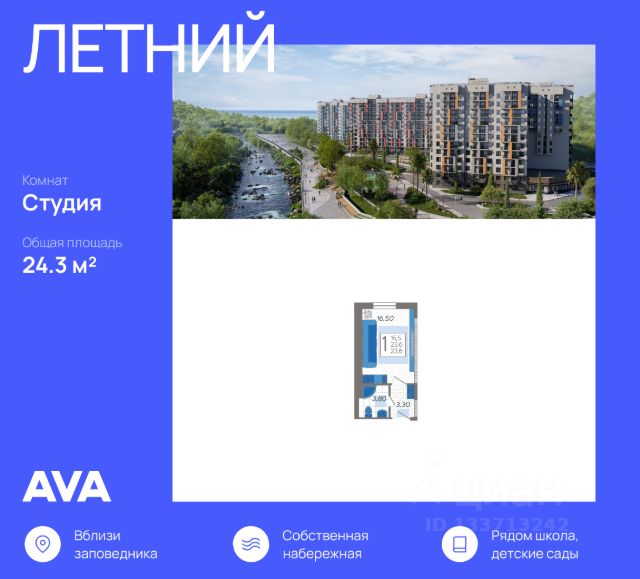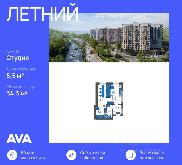 Продается студия в доме (Литер 4), Преимущества квартиры: совмещённый санузел, балкон, smart квартира, срок сдачи : 2 кв. 2024, общей площадью 22.9 кв.м., на 1 этаже. Без отделки, но с возможностью заказать отделку Жилой комплекс "Летний" расположен в ущелье реки Кудепста. В пешей минутной доступности детские сады и школы. Удобный выезд к железнодорожному вокзалу и аэропорту. За 15 минут можно доехать до Олимпийского парка. ЖК Летний - это комплексная застройка из семи 12-этажных домов, который находится в долине реки Кудепста, с собственной набережной, видом из окон на море и горы, многоуровневым паркингом с эксплуатируемой кровлей, современными детскими и спортивными площадками. Рядом расположен заповедник, где берут начало туристические тропы на самые красивые водопады региона, единственная в России тисо-самшитовая роща. • 5 минут на машине до моря • 10 минут до центра Сочи • 10 минут до центра Адлера • 15 минут пешком до школы • 5 минут пешком Пятерочка в пешей доступности магазины и точки бытового обслуживания • 10 минут пешком до конного клуба Верхом по Сочи, где начинаются прогулочные маршруты по достопримечательностям долины реки Кудепста на лошадях или пешком • Варианты оплаты: рассрочка, стандартная ипотека, военная ипотека, ипотека без первоначального взноса, материнский капитал Торопитесь купить квартиру по выгодной цене на стадии строительства! Помните, что с каждым возведенным этажом увеличивается цена квартиры! #Z5vAzo