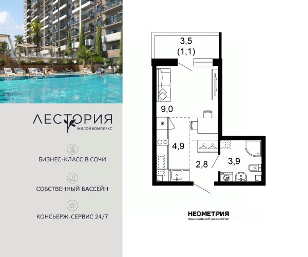 Проект включает в себя 7 жилых корпусов высотой 12 этажей. В подъездах выполнена дизайнерская отделка в светлой цветовой гамме с яркими акцентами, для удобства жителей в местах общего пользования предусмотрена навигация. В каждой секции предусмотрены помещения для хранения велосипедов и колясок с обустроенным местом для мойки колес и лап домашних животных. Покупателям в ЖК предложено множество планировочных решений: в наличии квартиры, как классического типа, так и европланировки. Из окон открываются виды на реку и горы. Квартиры сдаются без отделки. В состав комплекса входит школа на 2 000 мест, детский сад на 550 мест и фитнес-центр. На первых этажах расположены коммерческие помещения. Во дворах установлены детские площадки, спортивные комплексы и деревянные беседки для отдыха. По периметру ЖК ведется видеонаблюдение, к которому можно подключится online при помощи специального приложения для мобильных устройств. Рядом с комплексом располагается благоустроенная набережная реки Кудепста. Комплекс расположен в микрорайоне Кудепста города Сочи. В окрестностях района находится большая плантация пробкового дуба. В пешей доступности есть школы, детские сады, магазины, медучреждения, салоны красоты и места для отдыха. Комплекс расположен в 1,9 км от моря, и 7 км до Сочи.