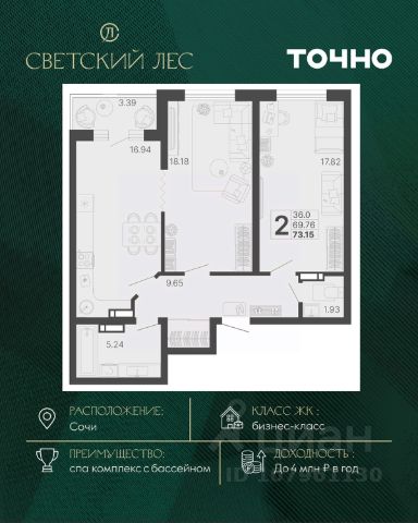 ЖК Отражение - это настоящий бизнес-класс в самом сердце города. Идеальный баланс трех ценностей: комфорта, безопасности и качества для гармоничной и спокойной жизни. Самое важное в шаговой доступности - поликлиники, сад, школа, кинотеатр, православный храм, огромное количество магазинов и аптек, отделение банка, салоны красоты, почта. Объект расположен внутри сложившегося микрорайона со всем необходимым. Донская респектабельный район, который сегодня переживает новый расцвет и обновляется. Насыщенная инфраструктура района становится только лучше и разнообразнее. Не вы подстраиваетесь под структуру, а она под вас - здесь времени хватит на все. С помощью развитой внутренней инфраструктуры создаётся пространство больших возможностей, самые необходимые товары и услуги - на расстоянии минутной поездки на лифте. В домах предусмотрена подземная парковка и зарядная станция для электрокаров. Закрытая охраняемая территория; вход в подъезд по Face-id; зона для работы и переговоров; зал для йоги и фитнеса; зона гольфа и настольный теннис; шахматный стол и мини-хоккей; амфитеатр, который в вечернее время будет функционировать как кинотеатр на свежем воздухе; территория с зонами для отдыха и детской игровой площадкой.