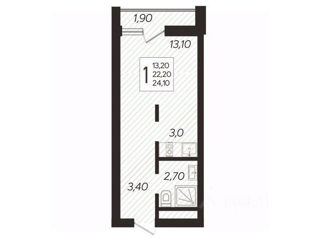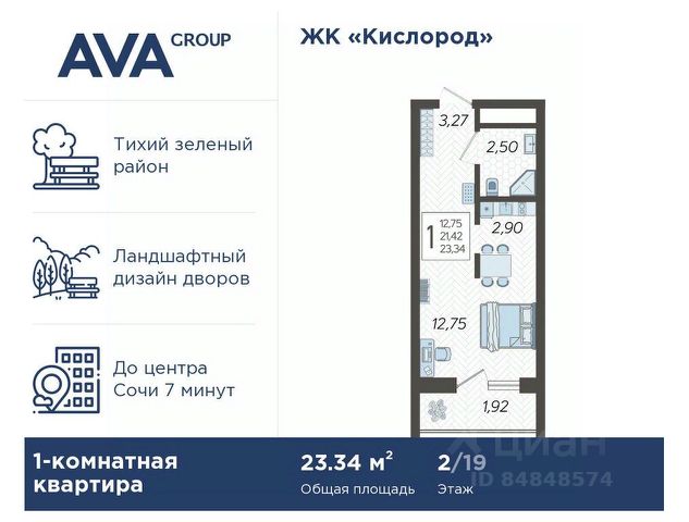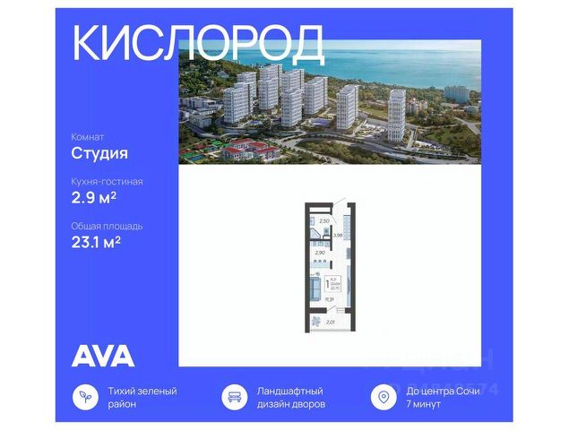 В продаже студия, площадью 22.8, расположенная Литер 8 жилого комплекса бизнес-класса "Кислород". Комплекс от девелопера AVA находится в Сочи, на северном склоне горы Бытха, в 7 минутах езды от центра города.