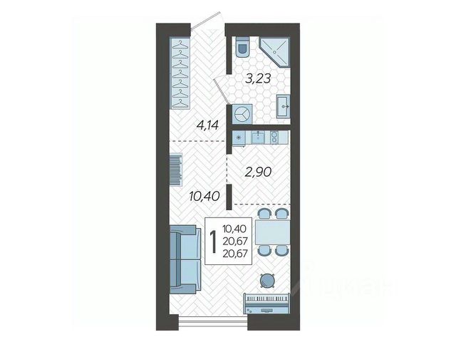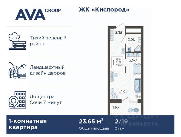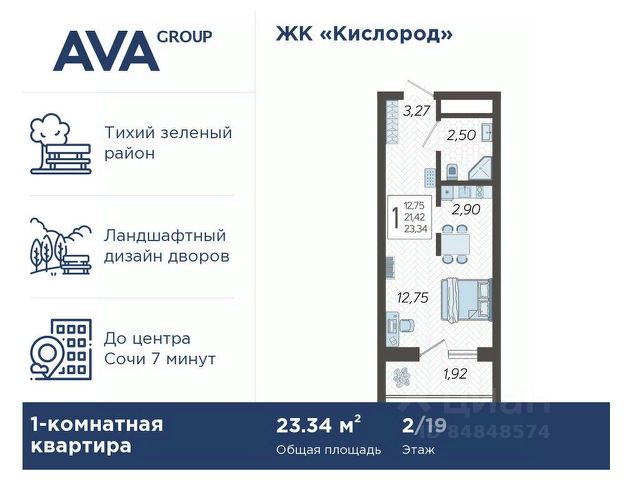 В продаже студия, площадью 20.67, расположенная Литер 3 жилого комплекса бизнес-класса "Кислород". Комплекс от девелопера AVA находится в Сочи, на северном склоне горы Бытха, в 7 минутах езды от центра города.
