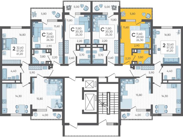 • ✅ Объект наибольшей площади: 43,3 м²