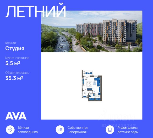 Проект включает в себя 7 жилых корпусов высотой 12 этажей. В подъездах выполнена дизайнерская отделка в светлой цветовой гамме с яркими акцентами, для удобства жителей в местах общего пользования предусмотрена навигация. В каждой секции предусмотрены помещения для хранения велосипедов и колясок с обустроенным местом для мойки колес и лап домашних животных. Покупателям в ЖК предложено множество планировочных решений: в наличии квартиры, как классического типа, так и европланировки. Из окон открываются виды на реку и горы. Квартиры сдаются без отделки. В состав комплекса входит школа на 2 000 мест, детский сад на 550 мест и фитнес-центр. На первых этажах расположены коммерческие помещения. Во дворах установлены детские площадки, спортивные комплексы и деревянные беседки для отдыха. По периметру ЖК ведется видеонаблюдение, к которому можно подключится online при помощи специального приложения для мобильных устройств. Рядом с комплексом располагается благоустроенная набережная реки Кудепста. Комплекс расположен в микрорайоне Кудепста города Сочи. В окрестностях района находится большая плантация пробкового дуба. В пешей доступности есть школы, детские сады, магазины, медучреждения, салоны красоты и места для отдыха. Комплекс расположен в 1,9 км от моря, и 7 км до Сочи.