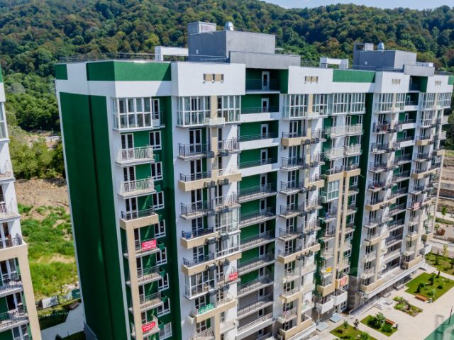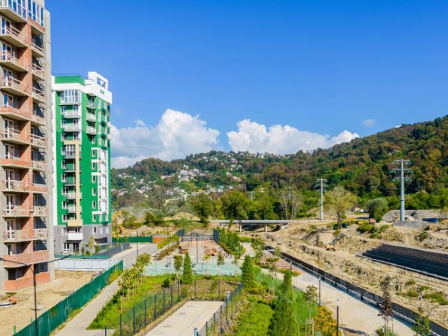 Ровное место, широкие проезды и расстояния между домами, огромная внутренняя просторная территория, что редкость для Сочи.