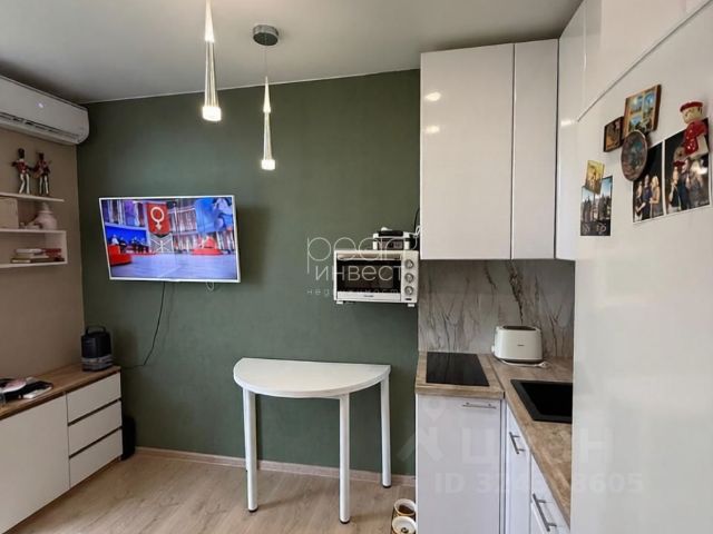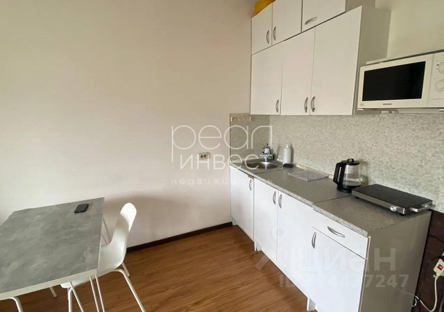 Остается встроенная мебель и техника: кухонный гарнитур, посудомоечная машинка, индукционная двухкомфорочная плита, холодильник, стиральная машинка, два шкафа-купе, кондиционер, шторы блэкаут.