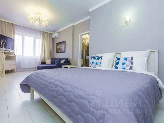 Квартира площадью 33 кв. м. Панорамное остекление, а также видовая лоджия квартиры - позволит насладиться незабываемым видом на море, и окрестности города Сочи. Вид на сторону морпорта и центра города. Самый красивый в доме.
