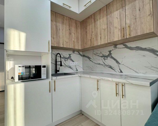 Отличная планировка: просторная комната с кухней-гостиной, есть зоны: для приготовления еды и отдыха, вместительная лоджия.