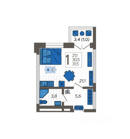 Укомплектован комфортной мебелью, текстилем, посудой, надежной встроенной техникой: