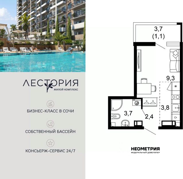 Продается квартира в жилом комплексе бизнес-класса "Лестория". В составе ЖК предусмотрена собственная аквазона площадью 473 квадратных метра с двумя подогреваемыми бассейнами, что соответствуют стандартам бизнес-класса. Аквазона объединяет взрослый и детский бассейны. В welcome-zone к услугам посетителей шезлонги и все необходимые принадлежности. Раздевалки с душевыми комнатами, инфракрасная сауна — здесь все предусмотрено для комфортного отдыха и полного расслабления. Для водного комплекса продуман отдельный вход, оборудованный системой контроля и управления доступом (СКУД). Аквазона только часть уникальной инфраструктуры "Лестории", которая включает в себя также благоустроенную территорию с пятьюдесятью функциональными зонами для прогулок, отдыха и занятий спортом, видовые террасы на крышах для отдыха, работы и встреч с друзьями, а также пространство набережной Кудепсты с шезлонгами и перголами. Жилой комплекс "Лестория" состоит из шести домов высотностью от 15 до 17 этажей, окружённых зеленым массивом национального парка. На придомовой территории для жителей предусмотрены закрытые дворы с круглосуточным видеонаблюдением, активити-центр для детей и подростков, тихие зоны для отдыха и медитации. На крышах домов будут созданы зеленые террасы для наслаждения прекрасными видами на море и горы. В проекте предусмотрены разные варианты отделки квартир под потребности покупателей. Тем, кто хочет воплотить в жизнь собственные интерьерные задумки, подойдут квартиры без ремонта. Для комфортной жизни и отдыха в комплексе будет работать круглосуточный консьерж-сервис уровня 5*, который с легкостью закроет все ежедневные потребности: от заказа продуктов и встречи гостей в аэропорту до выгула и дрессировки питомца. К услугам жителей ЖК "Лестория" — собственная управляющая компания, для инвесторов предоставляются услуги доверительного управления. #z7O3VA