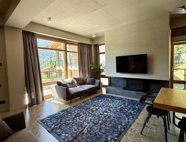 Ремонт выполнен по индивидуальному дизайн-проекту от именитого дизайнера. Все материалы, мебель и техника доставлены на заказ от флагманов рынка. Панорамное остекление в пол. Прямой вид на горы.
