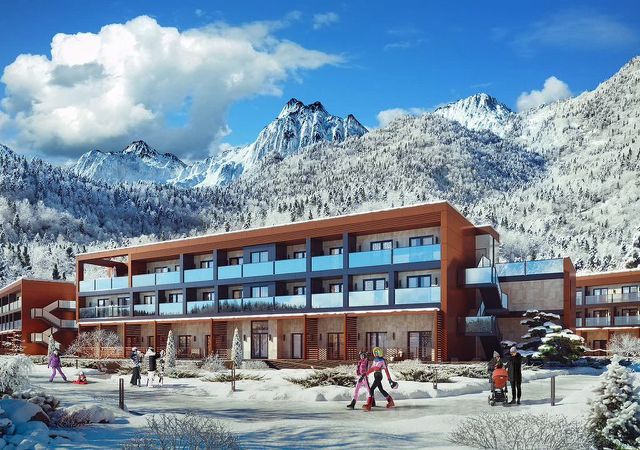 Проект включает в себя 7 жилых корпусов высотой 12 этажей. В подъездах выполнена дизайнерская отделка в светлой цветовой гамме с яркими акцентами, для удобства жителей в местах общего пользования предусмотрена навигация. В каждой секции предусмотрены помещения для хранения велосипедов и колясок с обустроенным местом для мойки колес и лап домашних животных. Покупателям в ЖК предложено множество планировочных решений: в наличии квартиры, как классического типа, так и европланировки. Из окон открываются виды на реку и горы. Квартиры сдаются без отделки. В состав комплекса входит школа на 2 000 мест, детский сад на 550 мест и фитнес-центр. На первых этажах расположены коммерческие помещения. Во дворах установлены детские площадки, спортивные комплексы и деревянные беседки для отдыха. По периметру ЖК ведется видеонаблюдение, к которому можно подключится online при помощи специального приложения для мобильных устройств. Рядом с комплексом располагается благоустроенная набережная реки Кудепста. Комплекс расположен в микрорайоне Кудепста города Сочи. В окрестностях района находится большая плантация пробкового дуба. В пешей доступности есть школы, детские сады, магазины, медучреждения, салоны красоты и места для отдыха. Комплекс расположен в 1,9 км от моря, и 7 км до Сочи. Купить квартиру-студию с балконом в районе Адлерский в городе Сочи.