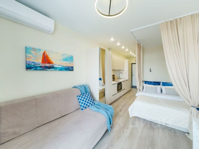 Формат Заезжай и живи! Вариант готового бизнеса под аренду. Есть вся необходимая бытовая техника. Полноценная кухня с рабочими зонами и барной стойкой, много мест для удобного хранения вещей, красоты и порядка. В санузле теплый пол. На мини-балконе (под кондиционер) место для сушки белья. Стиральная машина скрыта в нише. Продуманная планировка отделяет зону отдыха от входа в квартиру, что редко для небольших студий.