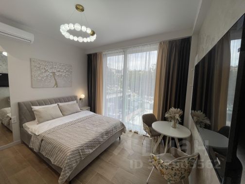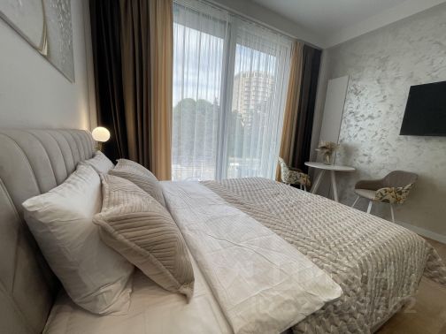 Предлагаем вам квартиру-студию, 24 кв.м. - оооочень уютную, с новым ремонтом в дизайнерском стиле. На первом этаже трехэтажного отеля. Установлен кодовый замок. Отдельный санузел, кухонная зона, балкон с ротанговой мебелью в окружении реликтовых хвойных деревьев. Теплый пол во всей квартире, в том числе санузле. В студии есть все необходимое для комфортного проживания!!! Кондиционер, двуспальная кровать с ортопедическим матрацем, полотенца и постельные принадлежности, раскладывающееся кресло-кровать,интернет, холодильник, микроволновая печь, варочная панель, электрочайник, вся необходимая посуда, утюг, фен, гладильная доска, шкаф для вещей, зеркало, стиральная машина, водонагреватель, просторная душевая. Окна выходят во внутренний двор. Весь комплекс окружен реликтовыми хвойными деревьями. Во дворе бассейн и детская площадка.