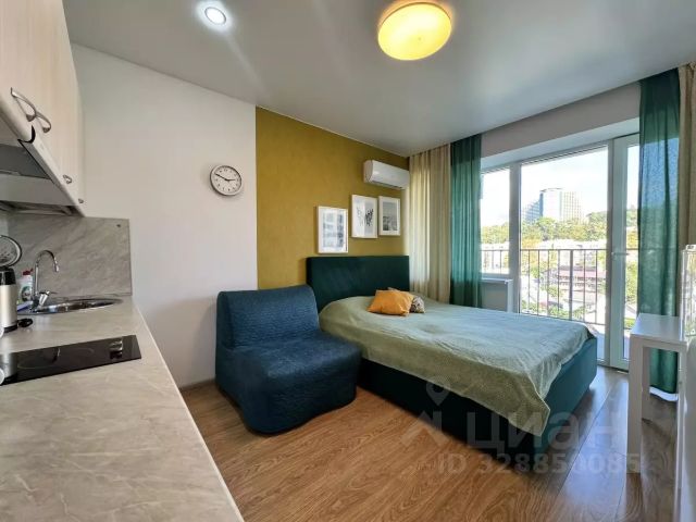 ЖК Отражение - это настоящий бизнес-класс в самом сердце города. Идеальный баланс трех ценностей: комфорта, безопасности и качества для гармоничной и спокойной жизни. Самое важное в шаговой доступности - поликлиники, сад, школа, кинотеатр, православный храм, огромное количество магазинов и аптек, отделение банка, салоны красоты, почта. Объект расположен внутри сложившегося микрорайона со всем необходимым. Донская респектабельный район, который сегодня переживает новый расцвет и обновляется. Насыщенная инфраструктура района становится только лучше и разнообразнее. Не вы подстраиваетесь под структуру, а она под вас - здесь времени хватит на все. С помощью развитой внутренней инфраструктуры создаётся пространство больших возможностей, самые необходимые товары и услуги - на расстоянии минутной поездки на лифте. В домах предусмотрена подземная парковка и зарядная станция для электрокаров. Закрытая охраняемая территория; вход в подъезд по Face-id; зона для работы и переговоров; зал для йоги и фитнеса; зона гольфа и настольный теннис; шахматный стол и мини-хоккей; амфитеатр, который в вечернее время будет функционировать как кинотеатр на свежем воздухе; территория с зонами для отдыха и детской игровой площадкой. Квартиры-студии с евроремонтом в городском округе Сочи Краснодарского края.