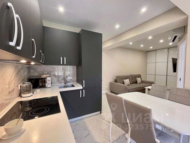 В продаже светлая 1 комнатная квартира в самом центре г.Сочи В квартире выполнен качественный дизайнерский ремонт с использованием премиальных материалов. На технике и мебели не экономили, после ремонта не кто не жил. Отличное предложение в самом центре города. Вся инфраструктура в шаговой доступности, до Моря 20 минут пешком вдоль набережной. Квартира расположена в 2 корпусе!!! На территории ЖК очень много коммерции, это ТЦ, аптеки, магазины, кофейни, спорт зал и тд. Школа, дет Сад, больница в шаговой доступности! В квартире не кто не прописан, один взрослый собственник, без обременений.