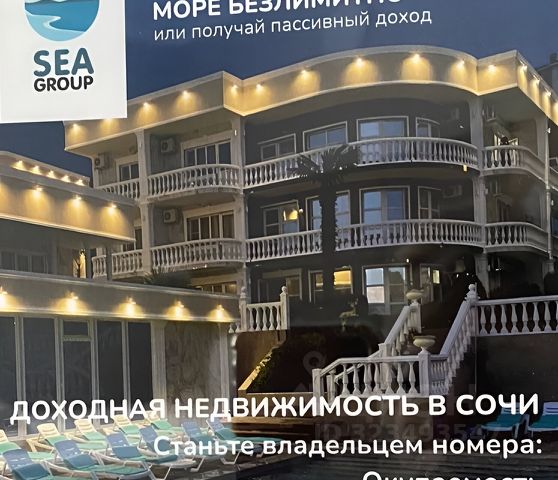 Продаётся действующий и приносящий пассивный доход апартамент c видом на море, в АК "Sea Family Resort & SPА 4* (Семейный курорт Море)" Сочи, Лазоревский р-н, Голoвинкa. Апартамент 2-х местный Комфорт с новым дизайнерским ремонтом, мебелью и техникой (вай-фай, холодильник, телевизор, кондиционер, фен, чайник, чай/кофе, халаты, тапочки). Возможно проживание с животными. Апарт-отель работает по системе Всё включено. Отелем управляет прoфесcиoнальнaя упрaвляющaя компания. К услугам собственников и гостей, закрытая территория 1.5 Га, ландшафтное озеленение, просторные детские и спортивные площадки, фитнес-клуб, СПА-комплекс, кинотеатр, розарий, паркинг. Круглосуточная консьерж служба, обслуживание номеров, камера хранения, прачечная, химчистка. На территории отеля 3 бассейна: взрослый с теплой водой (28С) и детский (32С), а также — бассейн с более прохладной водой для купания в особо жаркие дни. В 150 метрах от отеля собственный, уединенный, чистый, пляж с инфраструктурой. Ресторан шведский стол (всё включено), полный пансион, континентальный завтрак, Кафе, Бар у бассейна. Команда супер-аниматоров не даст Вам скучать! Разработаны как детские, так и взрослые программы с 10 утра до 8 вечера. Трансфер от/до аэропорта, горнолыжных склонов, морского вокзала, железнодорожного вокзала, торгового центра. Отличная возможность вложения средств с целью получения пассивного дохода и возможностью отдыха в любое время года. Готов к сотрудничеству с агентами.