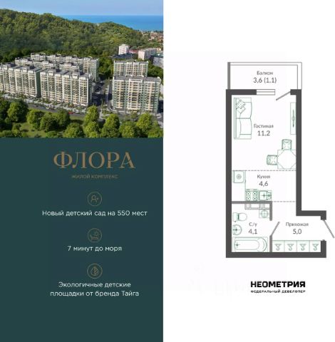Продается квартира в ЖК "Флора" от федерального девелопера "Неометрия". Это жилой комплекс комфорт-класса в самом зеленом районе Сочи. При проектировании постарались максимально сохранить окружающую флору и фауну. Теплое море, горы, целебные источники, река, близость заповедника все это уже рядом с вами. Жилой комплекс "Флора" это: • 4,5 Га благоустроенной территории от дизайн-бюро Cora * 7 минут до моря на машине • Современные экологичные детские площадки от бренда "Тайга" • Яркие аллеи с цветниками и кустарниками для прогулок и утренних пробежек • Благоустроенная набережная с шезлонгами и перголами • Спортивные зоны для любителей пляжного волейбола, бадминтона и йоги - лапомоечные и колясочные в каждом подъезде - подземный паркинг на 429 мест Собственная управляющая компания с функцией "доверительного управления" Кудепста это прекрасный зеленый оазис, который расположился между историческим центром Сочи и Адлером. Благодаря выгодному местоположению ЖК "Флора" между курортным Адлером и центром Сочи до самых популярных социальных, культурных и развлекательных объектов города можно добраться за считанные минуты: Олимпийский парк. Красная Поляна, аэропорт, жд-вокзал. Кроме того, в шаговой доступности расположена вся необходимая социальная инфраструктура, что удобно для жизни всех членов семьи: • 2 школы; • 3 детских сада; • 3 поликлиники; • 2 фитнес-центра; • 3 магазина и гипермаркета; • спортивная школа • 2 остановки общественного транспорта. На первых этажах комплекса расположены коммерческие помещения пункты выдачи маркетплейсов, кофейни, магазины. В жилом комплексе соблюден принцип сбалансированных и эргономичных планировочных решений: от компактных студий до просторных семейных квартир. В каждой квартире есть балкон, и установлены увеличенные оконные рамы. На 12 этаже повышенной комфортности открываются потрясающие виды на море и национальный парк благодаря панорамному остеклению лоджий. Квартиру можно купить с черновой отделкой или с готовым ремонтом "Прайм", а также с сертификатом на покупку мебели. Приобрести квартиру можно за наличную оплату, в ипотеку, с привлечением средства маткапитала. #2MADVT