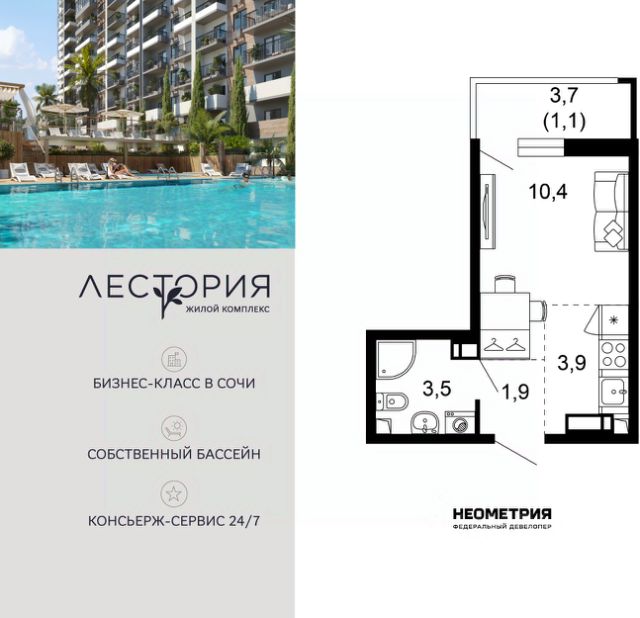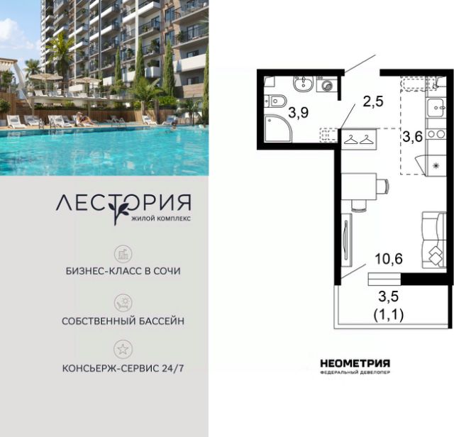 Продается квартира в жилом комплексе бизнес-класса "Лестория". В составе ЖК предусмотрена собственная аквазона площадью 473 квадратных метра с двумя подогреваемыми бассейнами, что соответствуют стандартам бизнес-класса. Аквазона объединяет взрослый и детский бассейны. В welcome-zone к услугам посетителей шезлонги и все необходимые принадлежности. Раздевалки с душевыми комнатами, инфракрасная сауна — здесь все предусмотрено для комфортного отдыха и полного расслабления. Для водного комплекса продуман отдельный вход, оборудованный системой контроля и управления доступом (СКУД). Аквазона только часть уникальной инфраструктуры "Лестории", которая включает в себя также благоустроенную территорию с пятьюдесятью функциональными зонами для прогулок, отдыха и занятий спортом, видовые террасы на крышах для отдыха, работы и встреч с друзьями, а также пространство набережной Кудепсты с шезлонгами и перголами. Жилой комплекс "Лестория" состоит из шести домов высотностью от 15 до 17 этажей, окружённых зеленым массивом национального парка. На придомовой территории для жителей предусмотрены закрытые дворы с круглосуточным видеонаблюдением, активити-центр для детей и подростков, тихие зоны для отдыха и медитации. На крышах домов будут созданы зеленые террасы для наслаждения прекрасными видами на море и горы. В проекте предусмотрены разные варианты отделки квартир под потребности покупателей. Тем, кто хочет воплотить в жизнь собственные интерьерные задумки, подойдут квартиры без ремонта. Для комфортной жизни и отдыха в комплексе будет работать круглосуточный консьерж-сервис уровня 5*, который с легкостью закроет все ежедневные потребности: от заказа продуктов и встречи гостей в аэропорту до выгула и дрессировки питомца. К услугам жителей ЖК "Лестория" — собственная управляющая компания, для инвесторов предоставляются услуги доверительного управления. #2TowIB