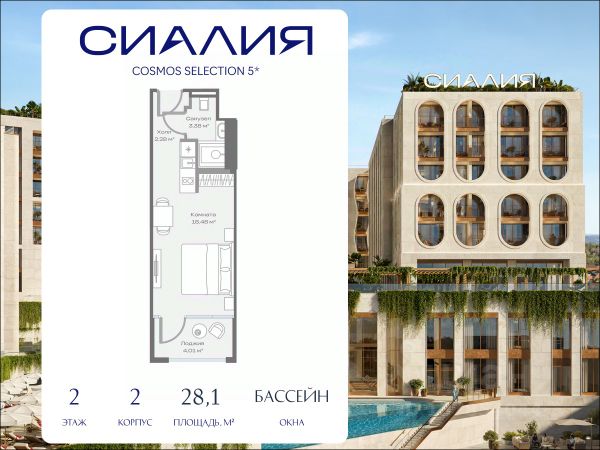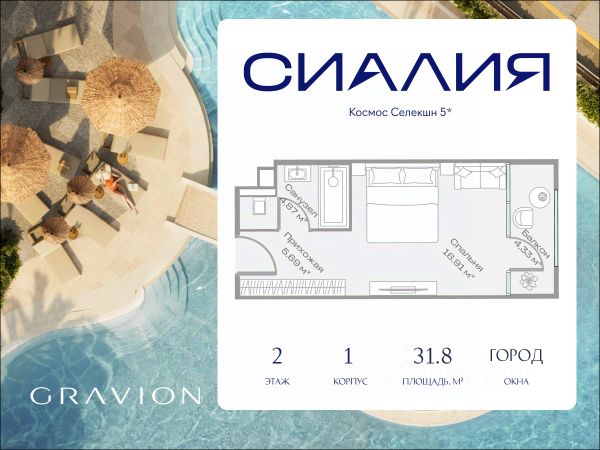 Просторный номер площадью 31.80 м² с панорамными окнами и приватным балконом, вид на город. Дизайн номеров выполнен в современном стиле с использованием натуральных материалов и текстур, что создает ощущение непрерывного диалога с природой. Полностью меблирован, оборудован системой "умный дом", TV, кондиционированием и всем необходимым для комфортного проживания. Возможность реализовать различные сценарии жизни и инвестирования. - Отельные номера в Космос Селекшн Сочи Сиалия Резорт 5* с пассивным доходом до 25,3% годовых и бесплатным проживанием 30 дней в году - Гостиничные резиденции под управлением Космос Селекшн Сочи Сиалия Резорт 5* с возможностью отдыха 365 дней в году СИАЛИЯ - отдых, который становится стилем жизни. Отель расположен в уникальном месте между морем и горами, на территории 4,5 га. На территории: - премиальный SPA и фитнес-центр - медицинский центр с anti-age и longivity-программами - 7 бассейнов, в том числе подогреваемый и бассейн с морской водой, - корты для падел-тенниса - детский клуб - гастрономический кластер из 5 ресторанов и кафе с различными концепциями и 5 баров, - многофункциональный конференц-центр и коворкинг
