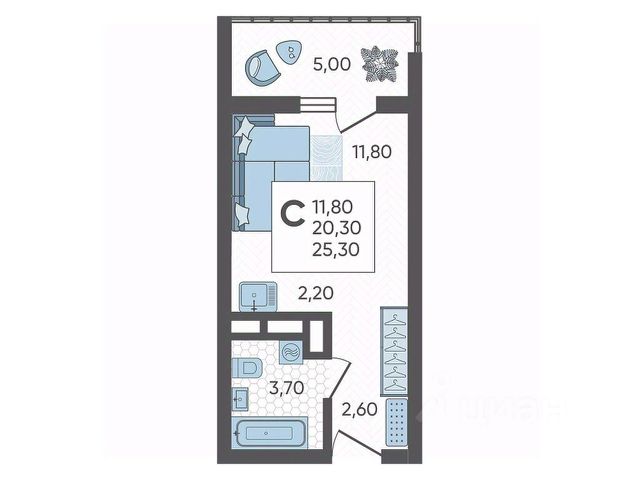 В продаже студия площадью 25.3, расположенная Литер 4 жилого комплекса комфорт+ класса "Горный квартал". Комплекс от девелопера AVA находится в Сочи, Хостинского района, в 15 минутах езды от центра города.