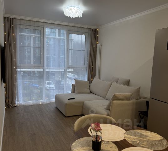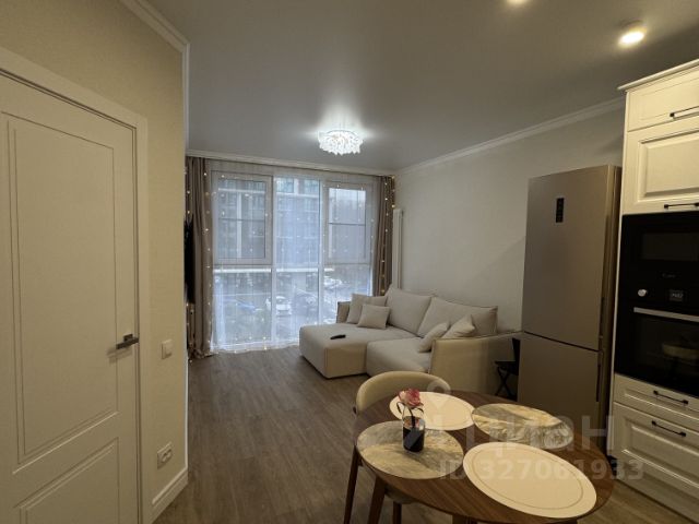 Кухня-гостиная: встроенный шкаф-купе в зоне прихожей; большой комфортный диван с функцией раскладывания; стол из шпона дерева диаметром 110 см. + два стула из массива дерева; тв LG-4К 139 см.; холодильник Haier; кухонный гарнитур полностью укомплектованный техникой стеклокерамическая варочная панель LEX, духовой шкаф LEX, встроенная микроволновая печь LEX (Италия), полноразмерная посудомоечная машина BOSCH 60см. (Польша), встроенная вытяжка с выводом в общую систему вентиляции; сплит система ROYAL Clima; теплый пол по всей комнате с электронным управлением; wi-fi 5G + разводка проводных точек доступа в комнате и в гостиной.