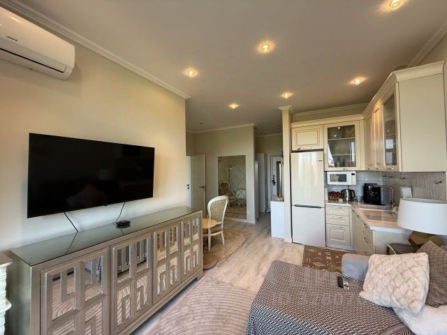 Небольшая, но очень уютная студия с нетерпением ждет своих будущих владельцев. В ней уже все готово для жизни и отдыха, поэтому отпраздновать новоселье представляется возможным сразу же после покупки. Общая площадь предложения составляет 24 квадратных метра. Пространство здесь распланировано классическим для студий образом: уютная небольшая кухня и спальная зона, которая одновременно выполняет функцию гостиной. Внутри выполнен новый ремонт, который отличается не только безупречным качеством, но и визуальной эстетикой. В основе оформления пространства элегантный современный классический стиль. Светлая палитра красок, которой в оформлении отведена самая главная роль, визуально делает пространство еще более свободным и уютным. Комплекс, в состав которого входит квартира, может похвастаться абсолютной самодостаточностью и автономностью. Здесь на самом деле есть все для комфортного быта и отдыха: Закрытая охраняемая территория; Игровые и спортивные площадки; Бассейн на крыше; Консьерж-сервис; Лобби-бар. Расположен дом в живописном зеленом районе, где сбываются абсолютно все мечты о жизни на берегу моря. Близость Курортного проспекта и делового центра Сочи отдельное преимущество. Квартира (вторичный рынок) в Сочи.