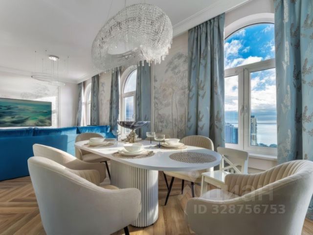 В квартире выполнен дизайнерский ремонт из дорогостоящих материалов, вся мебель, сантехника, люстры всё из Италии. Рядом с домом располагается гостиница "Жемчужина" - самый известный и большой гостиничный комплекс города Сочи, который славится открытым плавательным бассейном с подогреваемой морской водой - тренажерным залом - саунами - прекрасно оборудованным пляжем с водными аттракционами, баром, ресторанами, магазинами, прокатом яхт. А также рядом с домом находится Зимний театр жемчужина архитектуры, главная театрально-концертная площадка, которая является визитной карточкой летней столицы России. Сейчас Зимний театр в Сочи место проведения крупнейших фестивалей, показа драматических и эстрадных выступлений.