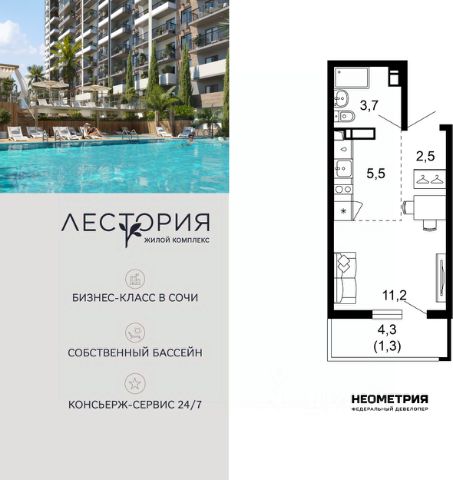 Продается квартира в жилом комплексе бизнес-класса "Лестория". В составе ЖК предусмотрена собственная аквазона площадью 473 квадратных метра с двумя подогреваемыми бассейнами, что соответствуют стандартам бизнес-класса. Аквазона объединяет взрослый и детский бассейны. В welcome-zone к услугам посетителей шезлонги и все необходимые принадлежности. Раздевалки с душевыми комнатами, инфракрасная сауна — здесь все предусмотрено для комфортного отдыха и полного расслабления. Для водного комплекса продуман отдельный вход, оборудованный системой контроля и управления доступом (СКУД). Аквазона только часть уникальной инфраструктуры "Лестории", которая включает в себя также благоустроенную территорию с пятьюдесятью функциональными зонами для прогулок, отдыха и занятий спортом, видовые террасы на крышах для отдыха, работы и встреч с друзьями, а также пространство набережной Кудепсты с шезлонгами и перголами. Жилой комплекс "Лестория" состоит из шести домов высотностью от 15 до 17 этажей, окружённых зеленым массивом национального парка. На придомовой территории для жителей предусмотрены закрытые дворы с круглосуточным видеонаблюдением, активити-центр для детей и подростков, тихие зоны для отдыха и медитации. На крышах домов будут созданы зеленые террасы для наслаждения прекрасными видами на море и горы. В проекте предусмотрены разные варианты отделки квартир под потребности покупателей. Тем, кто хочет воплотить в жизнь собственные интерьерные задумки, подойдут квартиры без ремонта. Для комфортной жизни и отдыха в комплексе будет работать круглосуточный консьерж-сервис уровня 5*, который с легкостью закроет все ежедневные потребности: от заказа продуктов и встречи гостей в аэропорту до выгула и дрессировки питомца. К услугам жителей ЖК "Лестория" — собственная управляющая компания, для инвесторов предоставляются услуги доверительного управления. #2ma98t