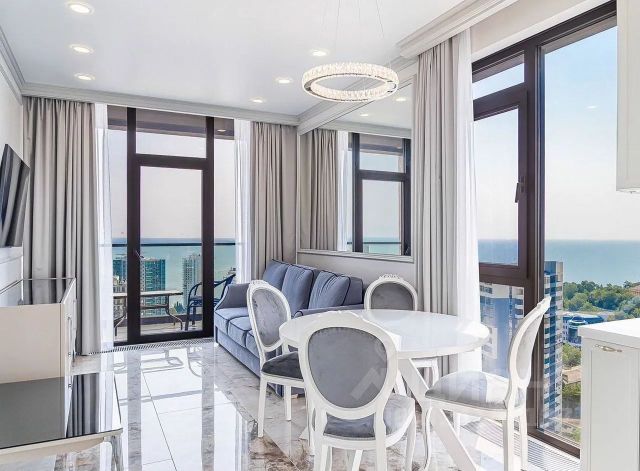 Роскошная панорамная квартира в самом сердце Сочи, в ЖК Метрополь! Предлагаем вам эксклюзивную квартиру с захватывающими видами на море, парк Дендрарий и город. Наслаждайтесь панорамой днем и звездным небом ночью! Особенности квартиры: Полностью панорамные окна с алюминиевым профилем. Удачная планировка: кухня, гостиная, выделенная спальня, балкон, гардеробная. Продумана каждая деталь, новый дизайнерский ремонт, использованы дорогая мебель и техника. Высокие потолки, добавляющие простора и света. Преимущества расположения и комплекса: - Всего 450 метров до морского побережья через парковую зону. - Закрытый охраняемый двор с видеонаблюдением. - Эксплуатируемая крыша с бассейнами-инфинити, зонами отдыха и спа-зонами. Детские и спортивные площадки на территории. Этот объект создан для тех, кто ценит комфорт, эксклюзивность, уют и безопасность. С удовольствием покажем вам эту квартиру, она не оставит вас равнодушным! Продается квартира в ЖК Метрополь в Сочи.