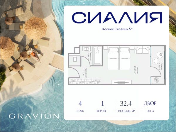 Просторный номер площадью 59.17 м² с панорамными окнами и приватным балконом, вид на внутренний двор. Дизайн номеров выполнен в современном стиле с использованием натуральных материалов и текстур, что создает ощущение непрерывного диалога с природой. Полностью меблирован, оборудован системой "умный дом", TV, кондиционированием и всем необходимым для комфортного проживания. Возможность реализовать различные сценарии жизни и инвестирования. - Отельные номера в Космос Селекшн Сочи Сиалия Резорт 5* с пассивным доходом до 25,3% годовых и бесплатным проживанием 30 дней в году - Гостиничные резиденции под управлением Космос Селекшн Сочи Сиалия Резорт 5* с возможностью отдыха 365 дней в году СИАЛИЯ - отдых, который становится стилем жизни. Отель расположен в уникальном месте между морем и горами, на территории 4,5 га. На территории: - премиальный SPA и фитнес-центр - медицинский центр с anti-age и longivity-программами - 7 бассейнов, в том числе подогреваемый и бассейн с морской водой, - корты для падел-тенниса - детский клуб - гастрономический кластер из 5 ресторанов и кафе с различными концепциями и 5 баров, - многофункциональный конференц-центр и коворкинг