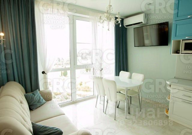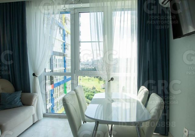 Современная квартира с ремонтом в новом жилом комплексе бизнес класса Раз Два Три. О квартире: В квартире выполнен качественный ремонт. Выбраны стильные цветовые характеристики. Просторная студия, гардеробная, холл и санузел. Как на фотографиях объект продается с мебелью и техникой- есть все для комфортного пребывания. В студии много света благодаря панорамным окнам. Квартира подходит для жизни и отдыха, а также круглогодичной сдачи в аренду на выгодных условиях. О комплексе: Комплекс состоит из трех 25 этажных домов, внизу располагаются коммерческие площади (общепит, магазины, аптеки, кофейни, супермаркеты и многое другое). На закрытой территории для жителей комплекса детские игровые и спортивные площадки, открытый и закрытый паркинг. Рядом с комплексом великолепная набережная реки Сочи, гимназия, муниципальный детский сад, детская и взрослая поликлиники, остановка общественного транспорта, продуктовый рынок. В доме шесть лифтов (четыре пассажирских и два грузопассажирских). Позвоните и мы ответим на все оставшиеся вопросы! Если Вы агент- звоните и мы покажем квартиру Вашему клиенту! Мы готовы показать это предложение в удобное для Вас время!