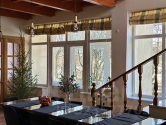 Дом без ремонта, планировка этажей свободная, нет ни стен, ни колонн, только лестница на 3 этажа, окна в пол.